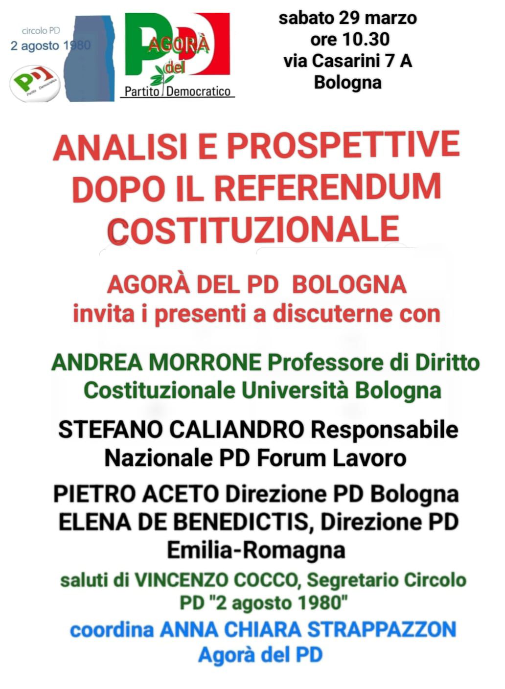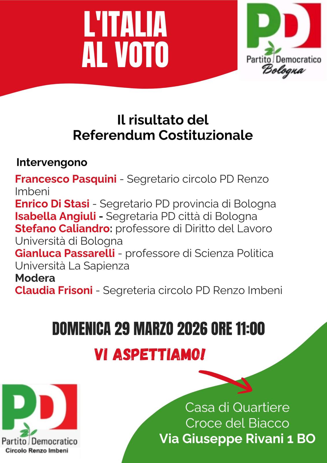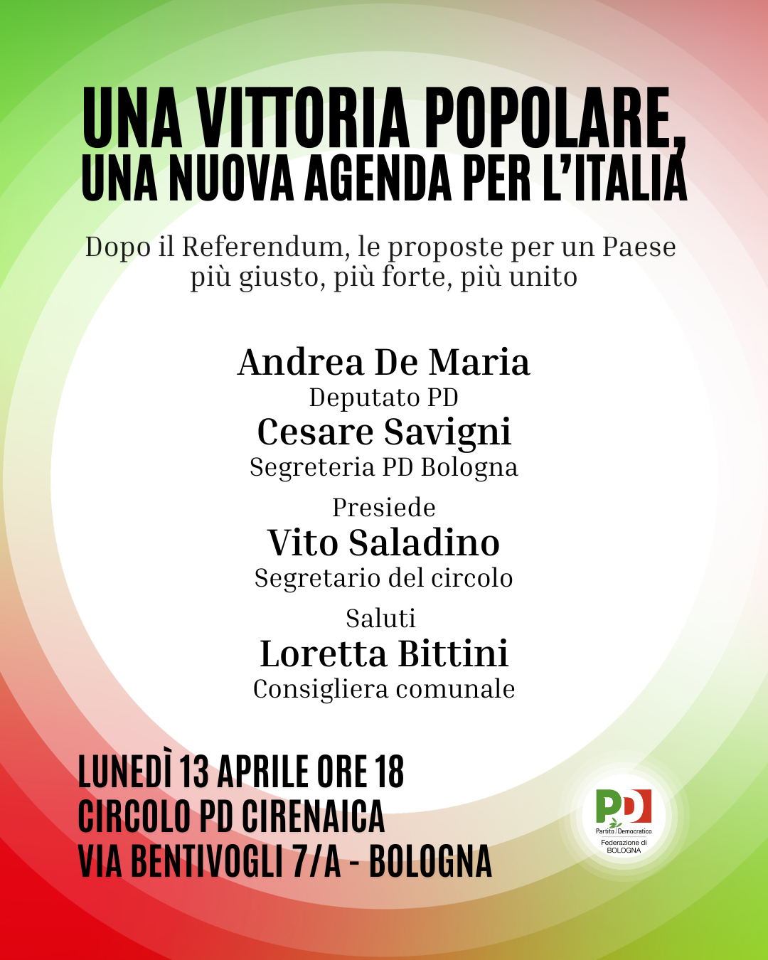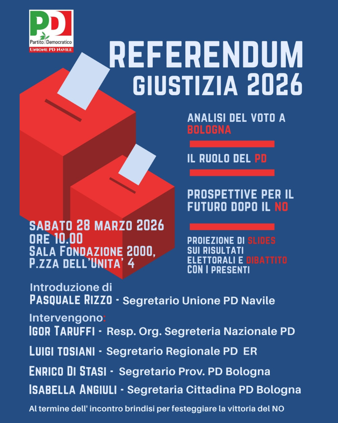 Per questo il Partito Democratico di Bologna promuove una serie di iniziative e incontri. Momenti di confronto che hanno l’obiettivo di tenere insieme analisi e proposta. Non si tratta solo di interpretare un risultato elettorale, ma di continuare un percorso di partecipazione e di impegno che ha visto Bologna protagonista. Da qui si riparte: dall’ascolto, dal confronto e dalla volontà di costruire risposte forti e credibili.