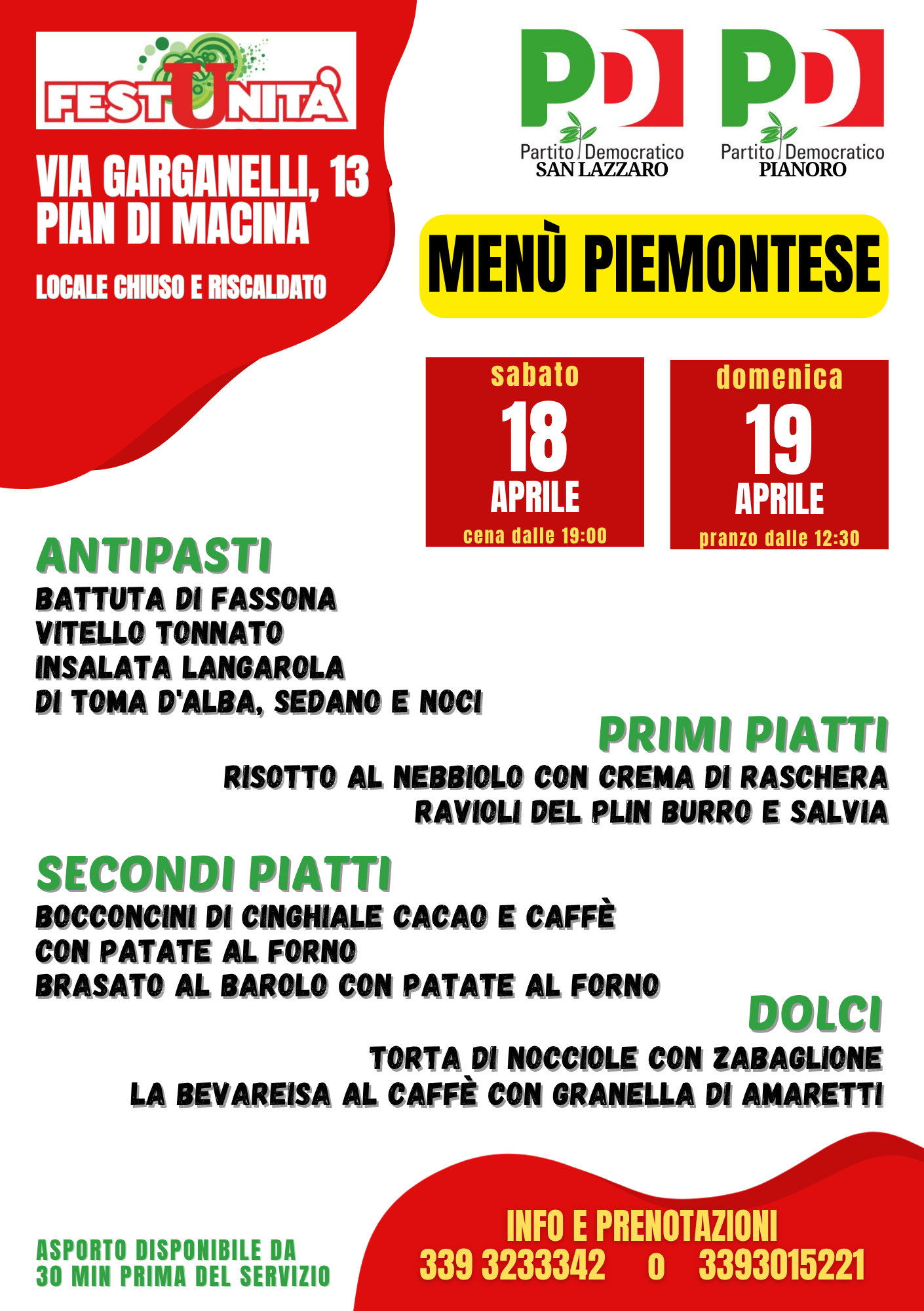 Disponibile l’asporto, consigliata la prenotazione ai numeri 339 3233342 e 339 3015221