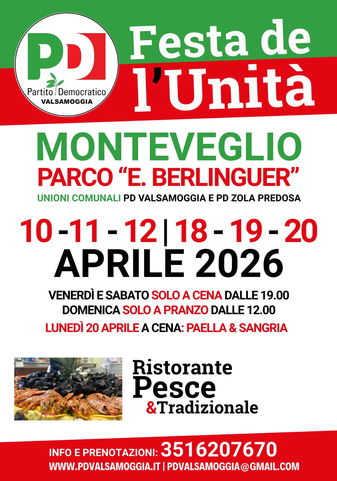 Sabato 18 a cena e domenica 19 aprile a pranzo