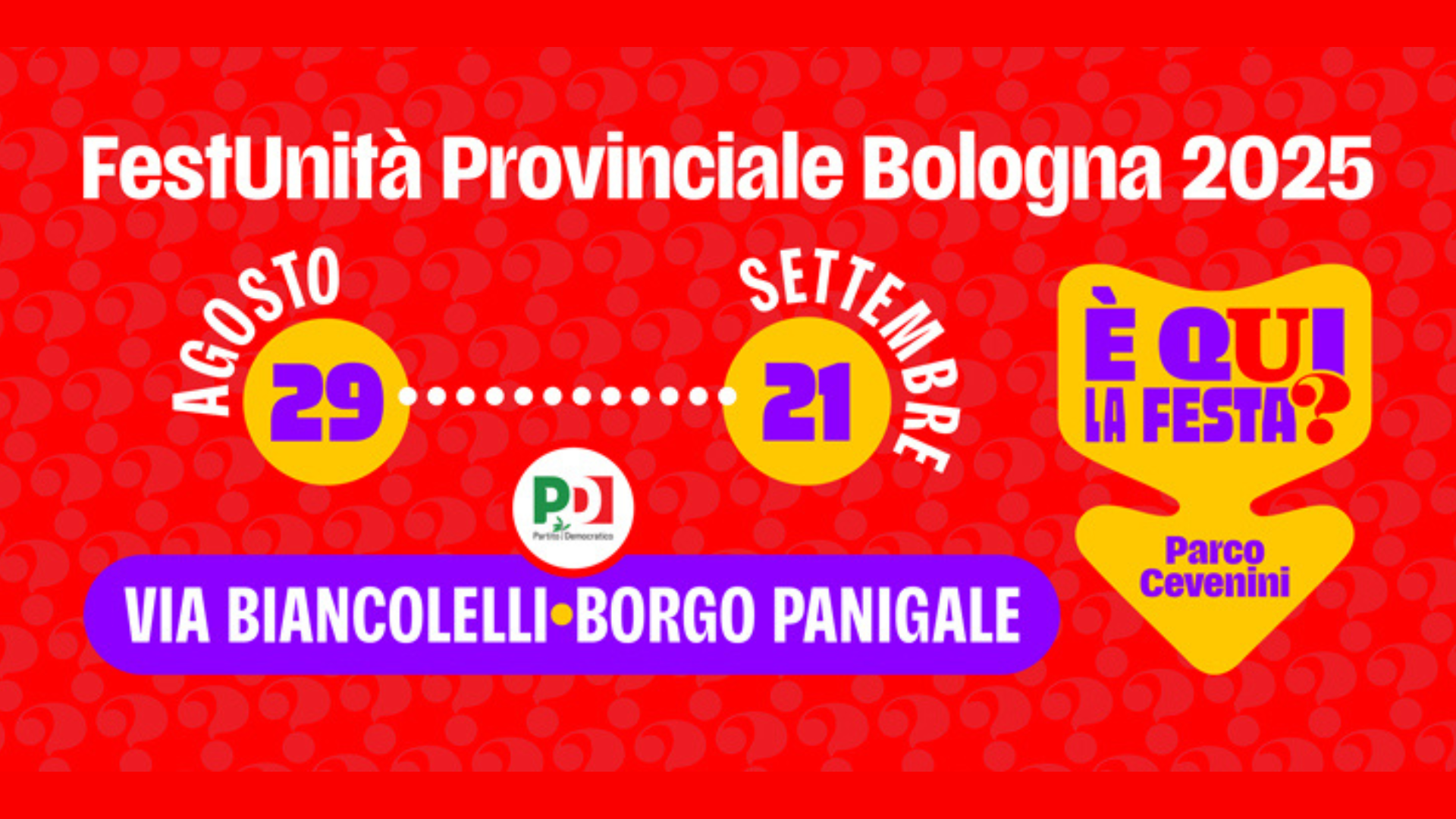 È qui la Festa? Sì! Allora che Festa sia! Dal 29 agosto al 21 settembre torna la FestUnità Bologna. Al Parco Cevenini di Borgo Panigale. Abbiamo…