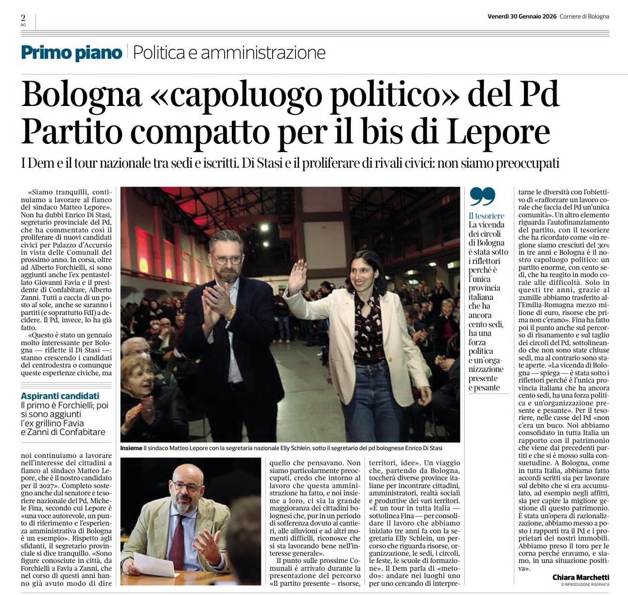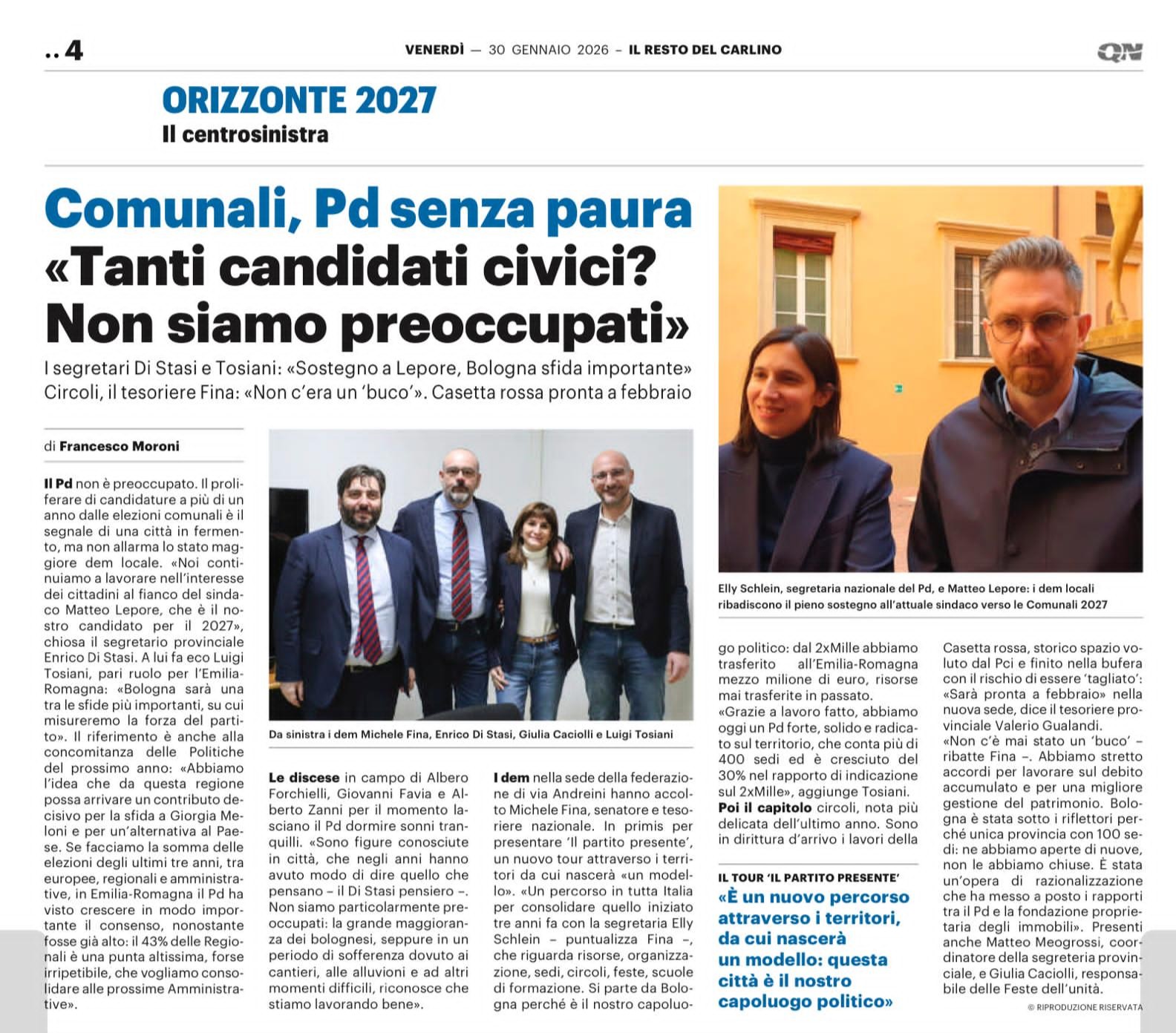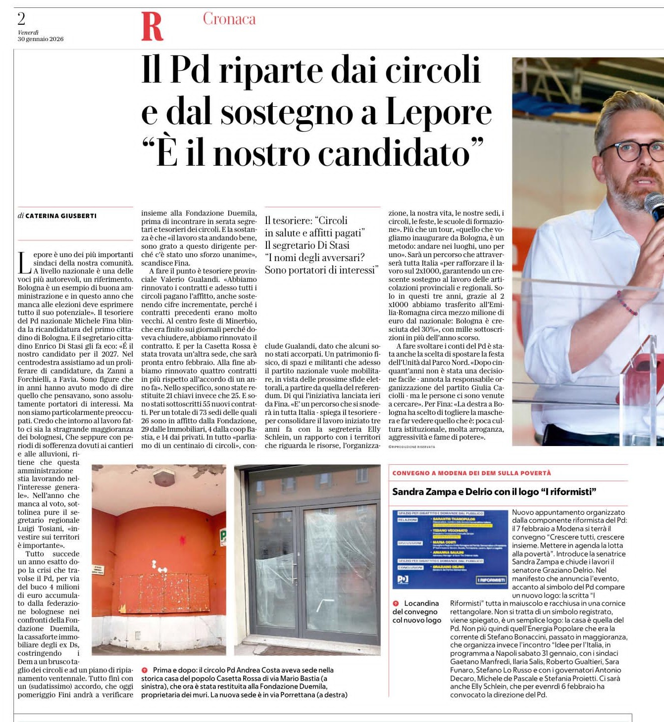 Rassegna stampa IL RESTO DEL CARLINO16 febbraio 2026 REPUBBLICA13 Febbraio 2026 IL RESTO DEL CARLINO13 febbraio 2026 REPUBBLICA12 Febbraio 2026 RESTO DEL CARLINO12 Febbraio 2026 IL RESTO DEL CARLINO11 febbraio 2026 IL RESTO DEL CARLINO8 Febbraio 2026 REPUBBLICA06 Febbraio 2026 CORRIERE DI BOLOGNA30 Gennaio 2026 IL RESTO DEL CARLINO30 gennaio 2026 REPUBBLICA30 Gennaio 2025