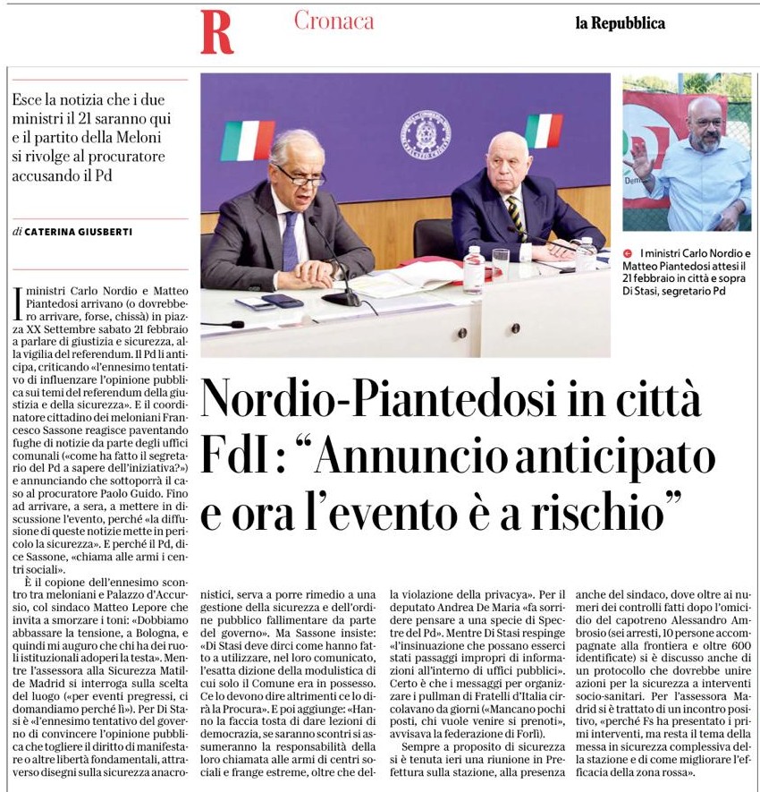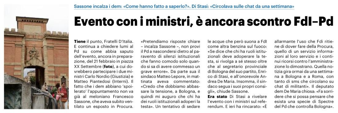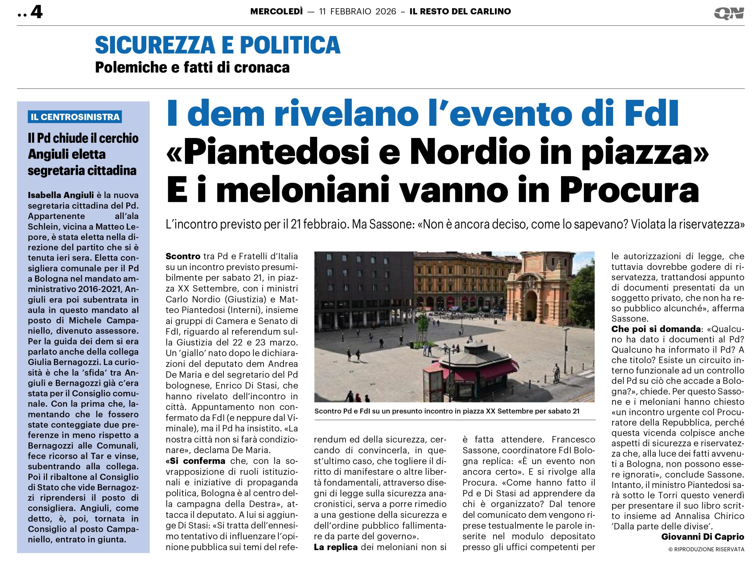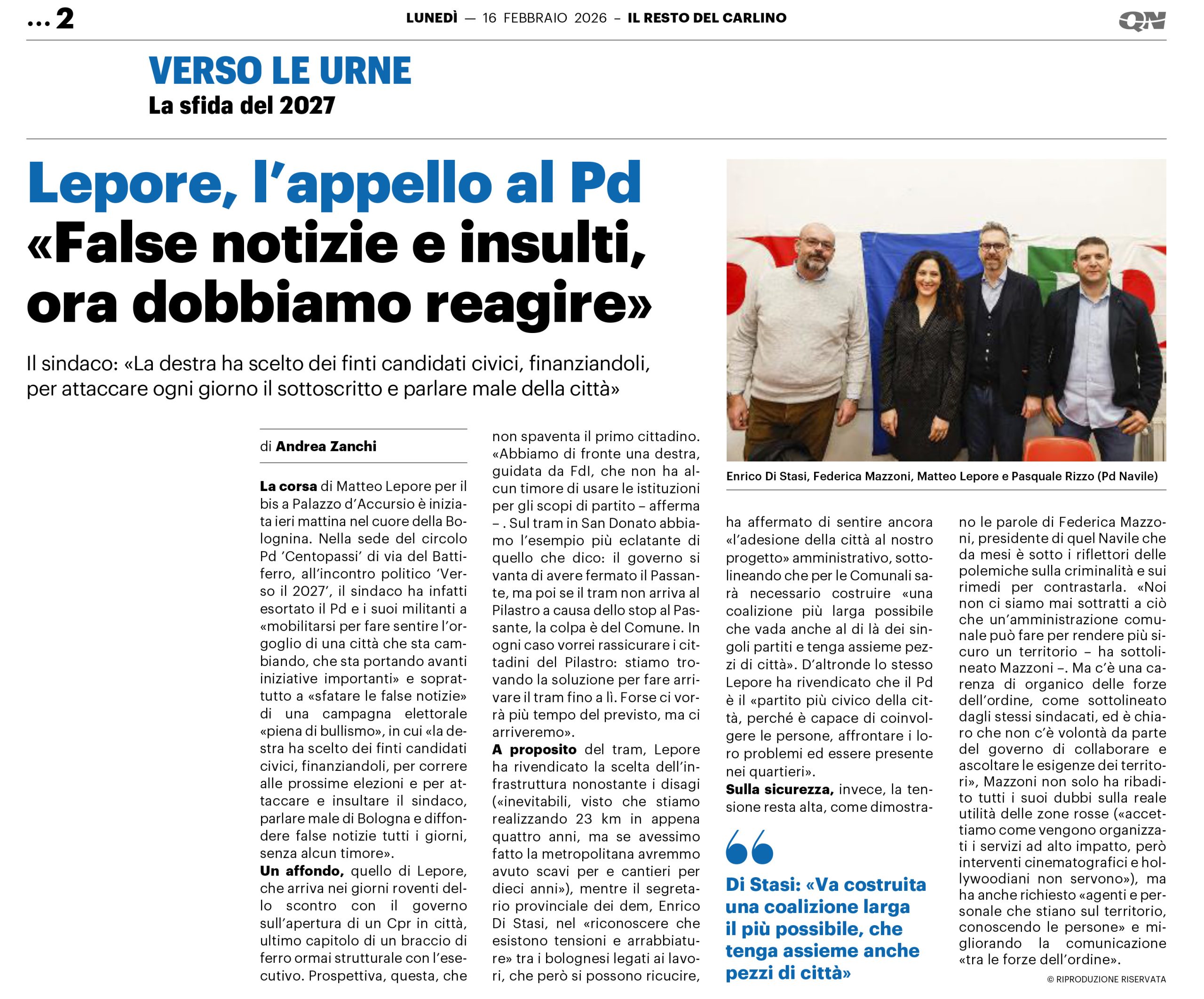 Rassegna stampa IL RESTO DEL CARLINO16 febbraio 2026 REPUBBLICA13 Febbraio 2026 IL RESTO DEL CARLINO13 febbraio 2026 REPUBBLICA12 Febbraio 2026 RESTO DEL CARLINO12 Febbraio 2026 IL RESTO DEL CARLINO11 febbraio 2026 IL RESTO DEL CARLINO8 Febbraio 2026 REPUBBLICA06 Febbraio 2026 CORRIERE DI BOLOGNA30 Gennaio 2026 IL RESTO DEL CARLINO30 gennaio 2026 REPUBBLICA30 Gennaio 2025